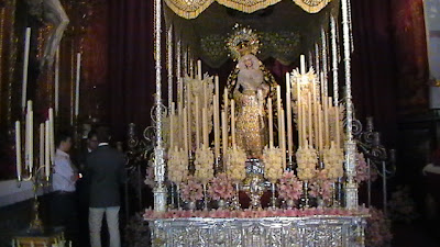 Hoy Viernes 5 de Octubre ha comenzado el Besamanos en honor a María Santísima del Rosario en sus Misterios Dolorosos Coronada. Y bajo la sorpresa de los presentes, hemos visto a María Santisima del Rosario bajo su palio, con toda su candelería, y sobre el canasto de su paso.