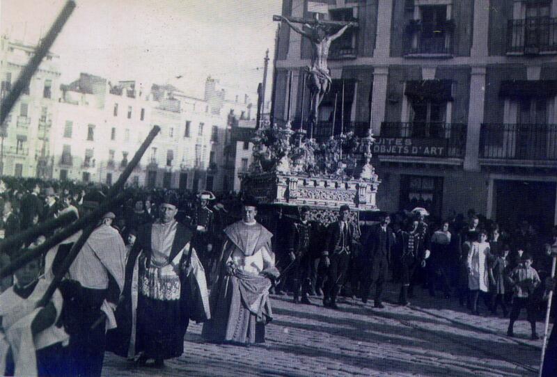 El majestuoso Cristo de la Clemencia o de los Cálices, procesionando en el Santo Entierro Magno de 1920, por primera y única vez.